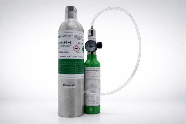 Cilindro de gás padrão e regulador de vazão para Teste de Resposta, BUMPTEST, de detectores de 4 gases.