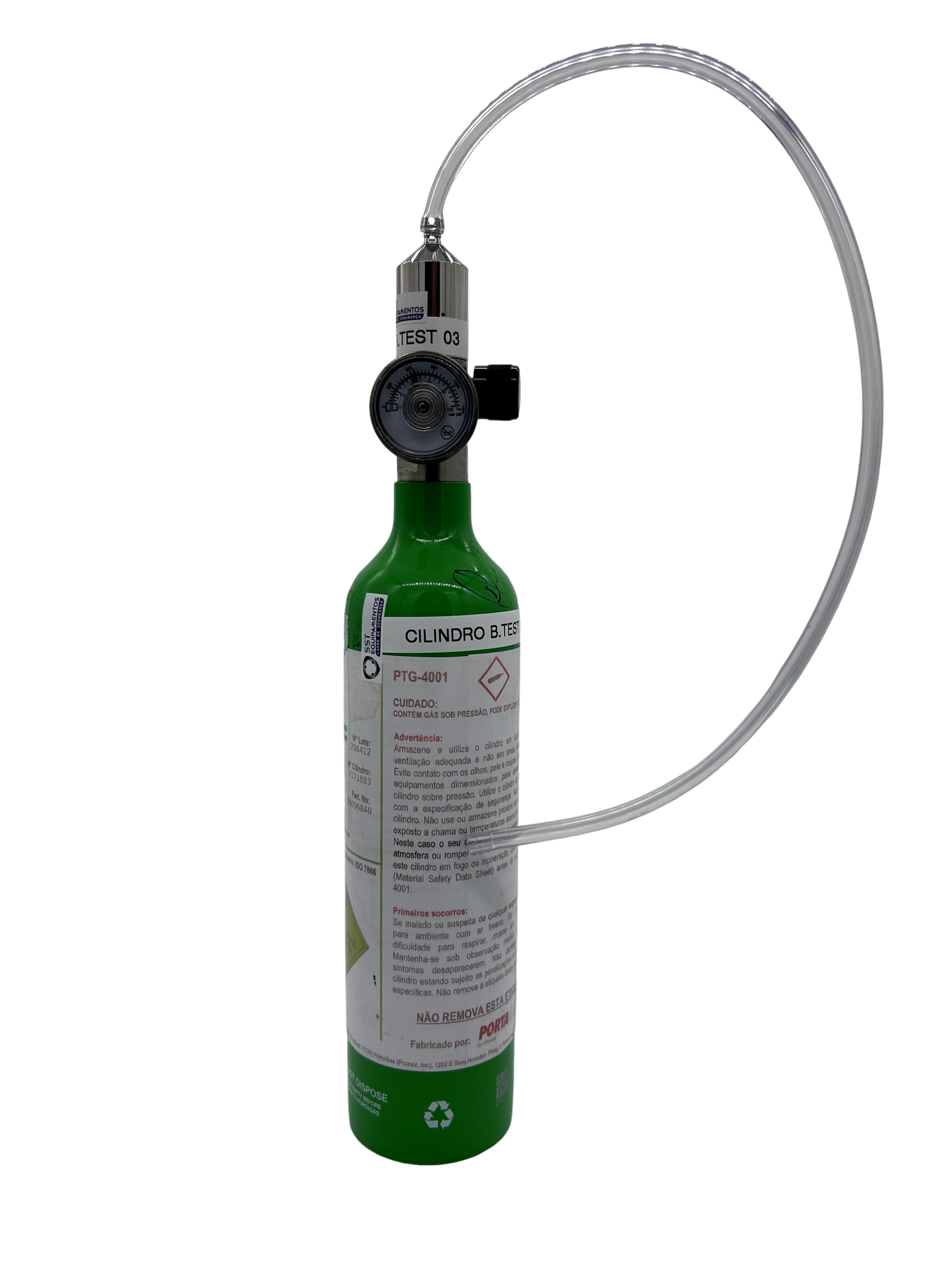 Cilindro de gás padrão e regulador de vazão para Teste de Resposta, BUMPTEST, de detectores de 4 gases.